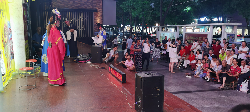 近年来,临湘市羊楼司镇文旅活动中心在开展服务农民服务基层文艺工作中不断创新思路,创办了“室内零元剧场”和“十三村街边剧场”,每逢周六都演绎国家级非物质文化遗产“嗡琴戏”经典曲目,吸引了近3万人次驻足观赏,让市民饱食了非遗美食文化,感受到了非遗文化的独特魅力。这不仅点亮了群众的夜生活,也成为了一道靓丽的风景线。