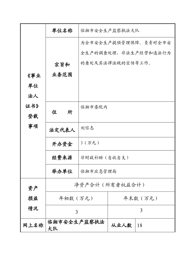 临湘市安全生产监察执法大队2023年度事业单位法人年度报告书
