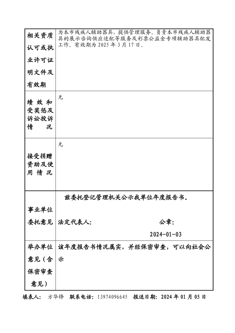 2023年度事业单位法人年度报告书—临湘市残疾人辅助器具服务中心
