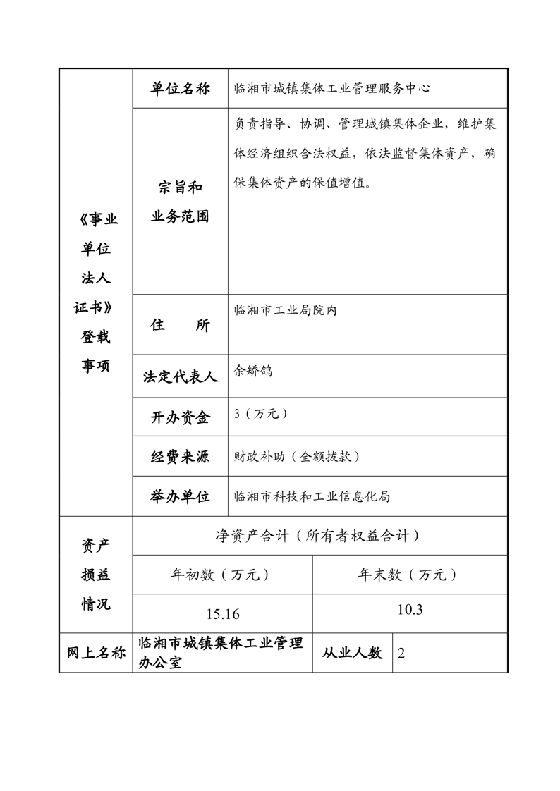 2023年度事业单位法人年度报告书—临湘市城镇集体工业管理服务中心