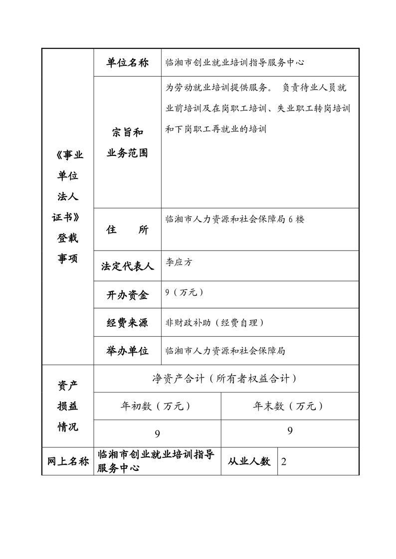 2023年度事业单位法人年度报告书—临湘市创业就业培训指导服务中心