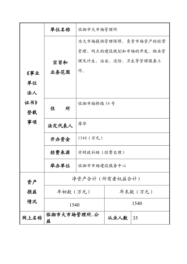 2023年度事业单位法人年度报告书—临湘市大市场管理所