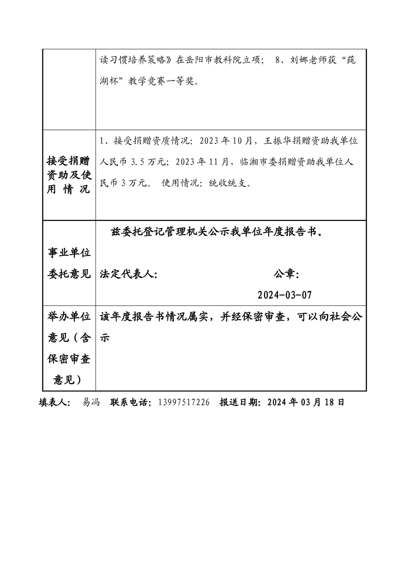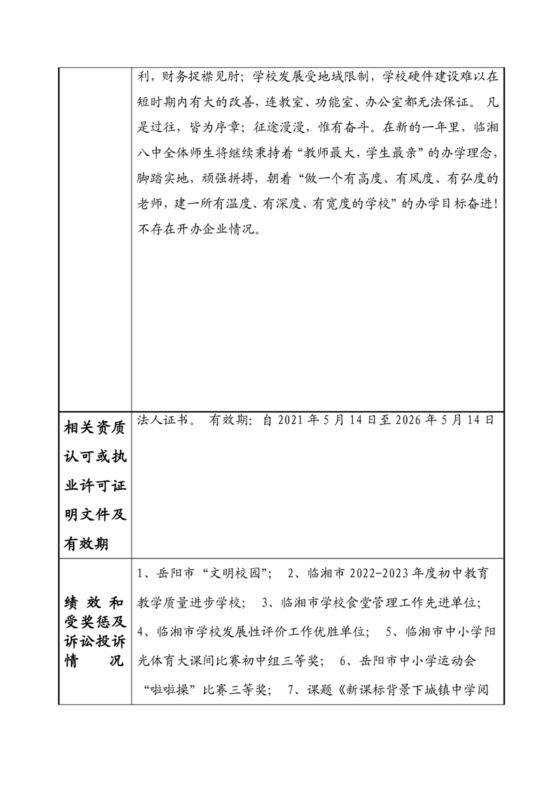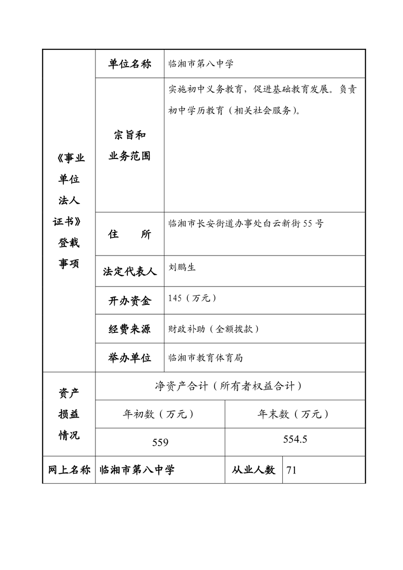 2023年度事业单位法人年度报告书—临湘市第八中学
