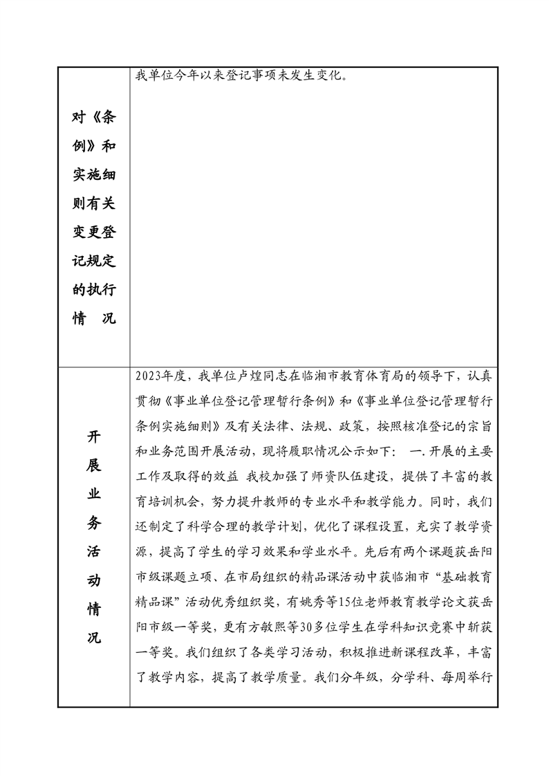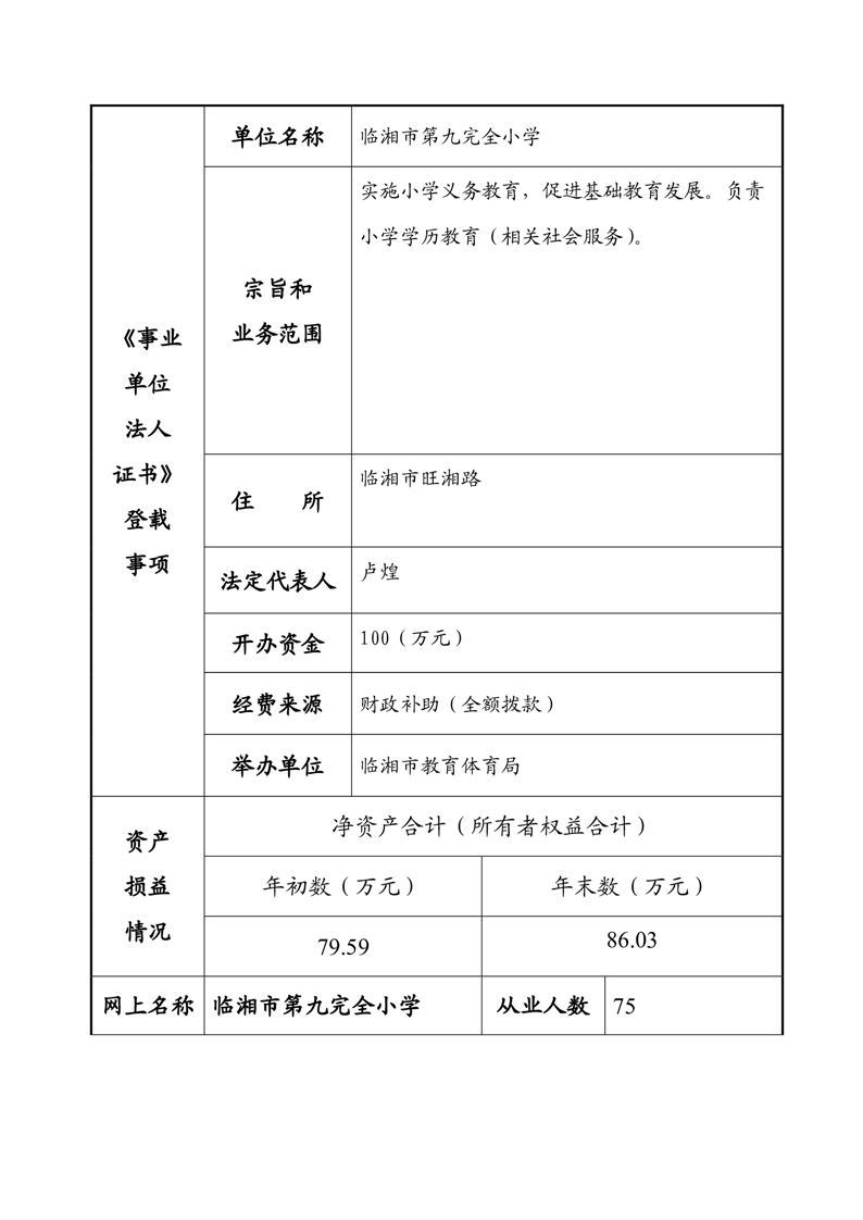 2023年度事业单位法人年度报告书—临湘市第九完全小学