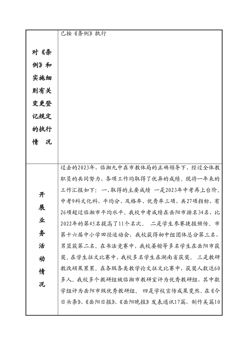 2023年度事业单位法人年度报告书—临湘市第九中学