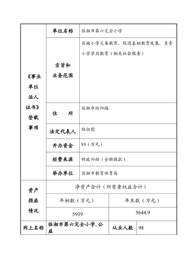 2023年度事业单位法人年度报告书—临湘市第六完全小学