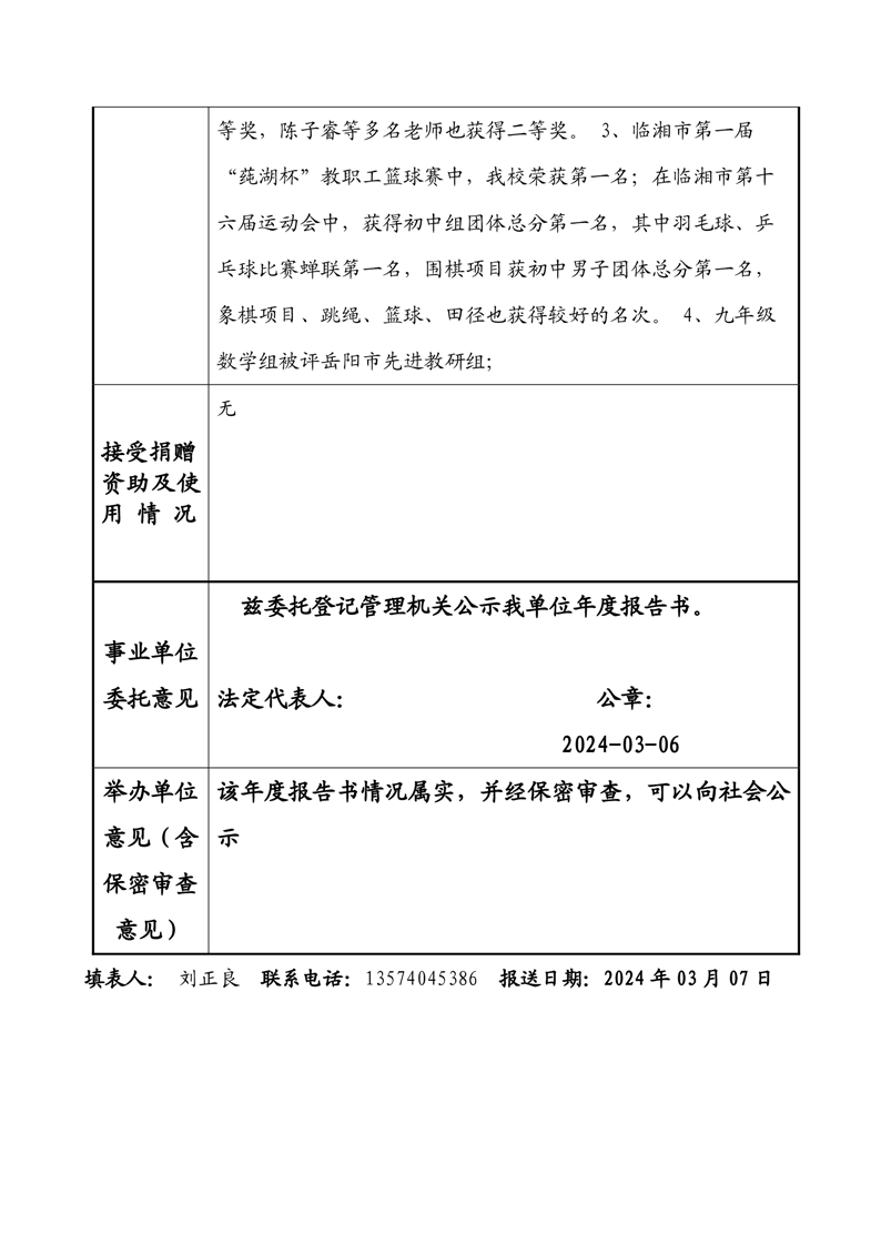 2023年度事业单位法人年度报告书—临湘市第六中学