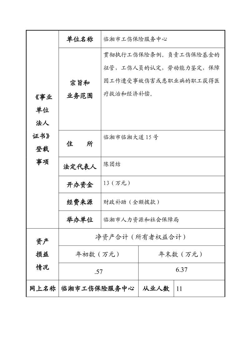 2023年度事业单位法人年度报告书—临湘市工伤保险服务中心