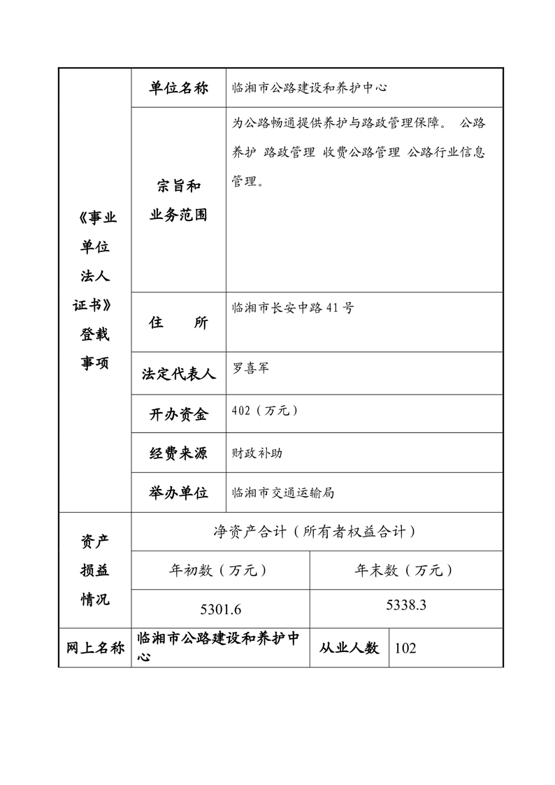 2023年度事业单位法人年度报告书—临湘市公路建设和养护中心