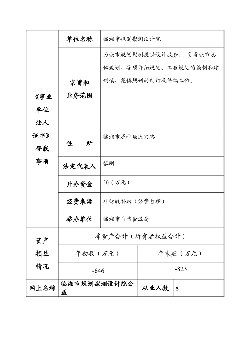 2023年度事业单位法人年度报告书—临湘市规划勘测设计院