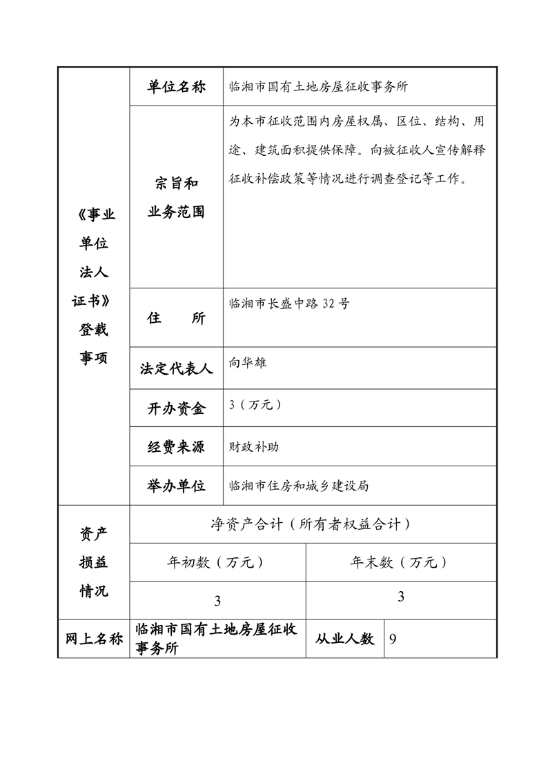 2023年度事业单位法人年度报告书—临湘市国有土地房屋征收事务所