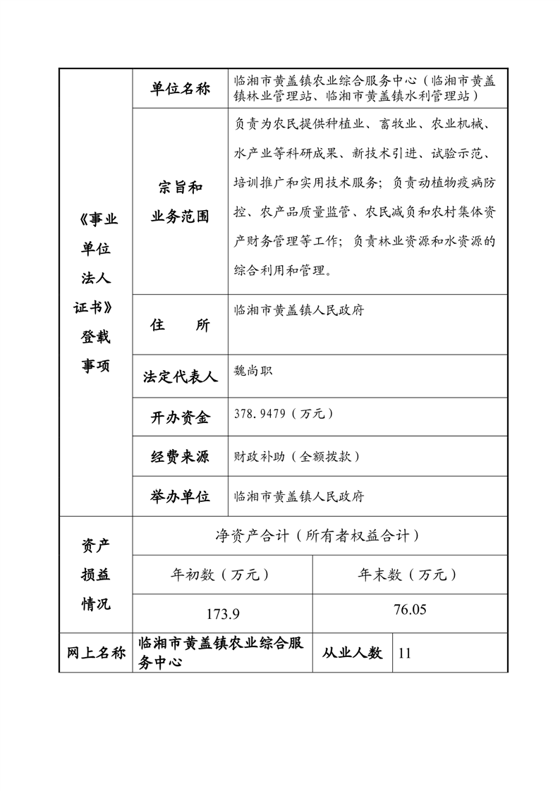 2023年度事业单位法人年度报告书—临湘市黄盖镇农业综合服务中心