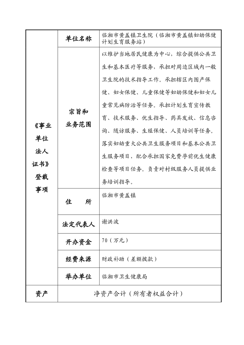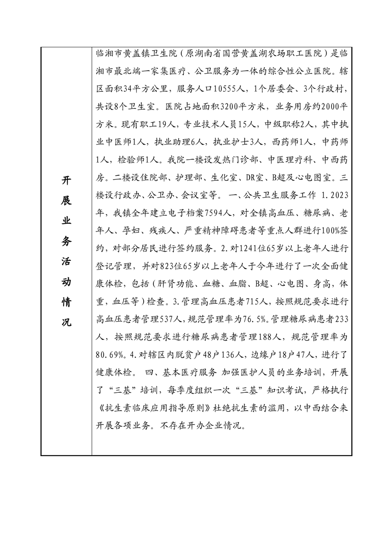2023年度事业单位法人年度报告书—临湘市黄盖镇卫生院