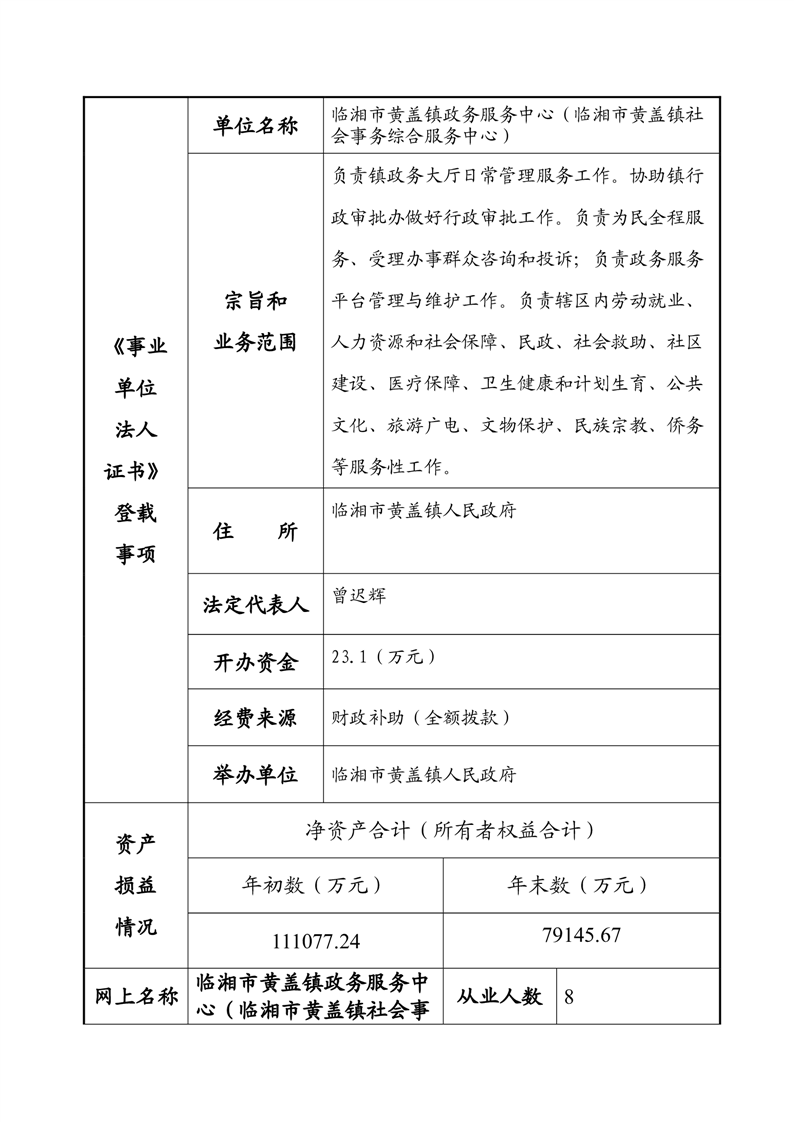 2023年度事业单位法人年度报告书—临湘市黄盖镇政务服务中心