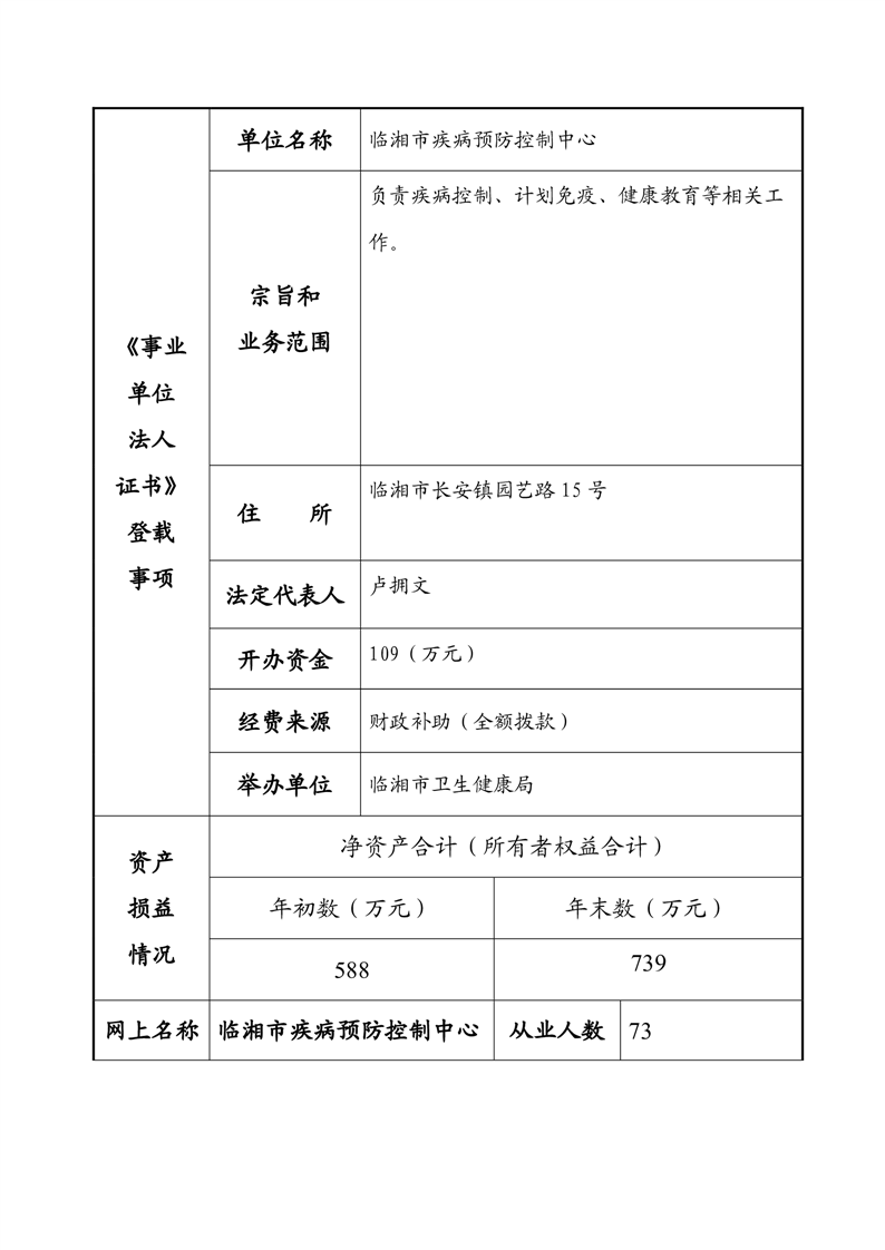 2023年度事业单位法人年度报告书—临湘市疾病预防控制中心