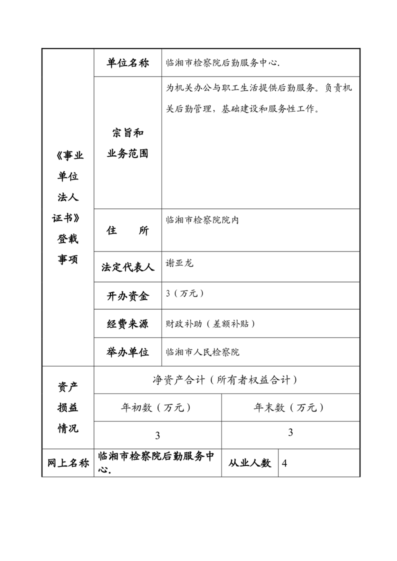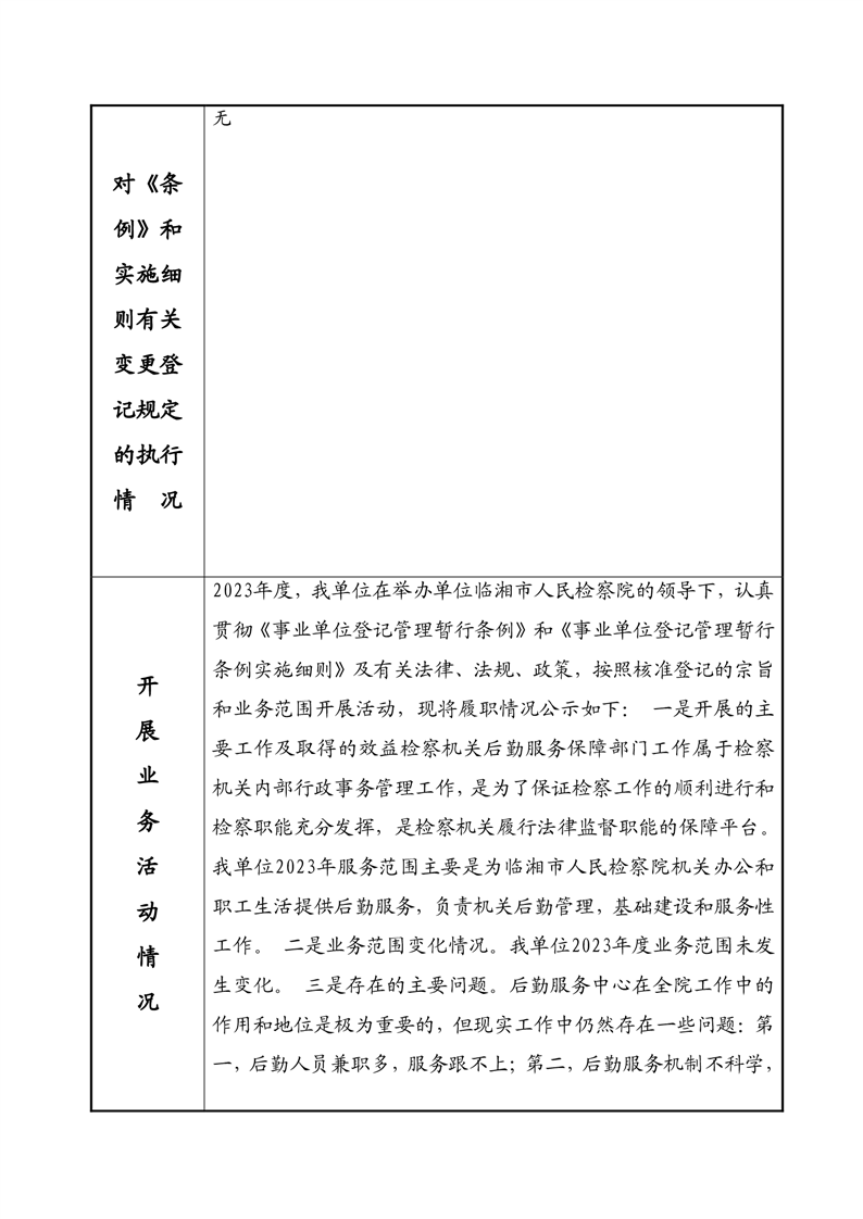 2023年度事业单位法人年度报告书—临湘市检察院后勤服务中心