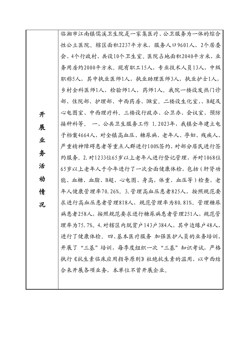 2023年度事业单位法人年度报告书—临湘市江南镇儒溪卫生院
