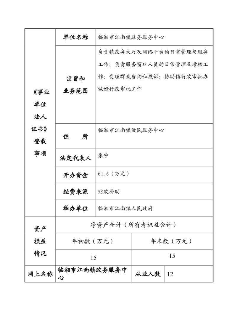 2023年度事业单位法人年度报告书—临湘市江南镇政务服务中心