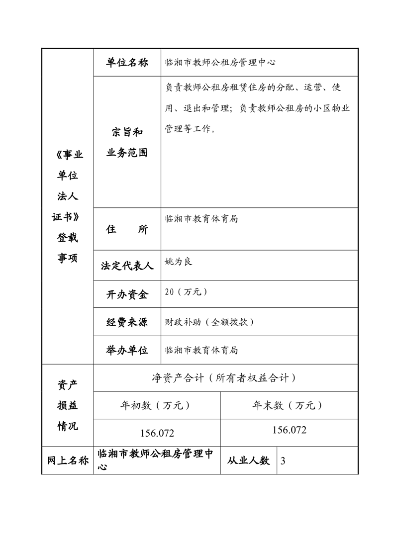 2023年度事业单位法人年度报告书—临湘市教师公租房管理中心