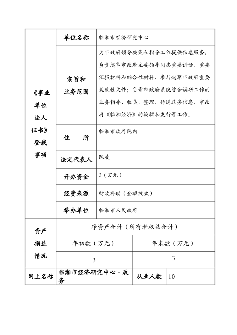 2023年度事业单位法人年度报告书—临湘市经济研究中心