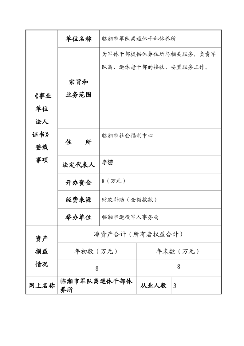 2023年度事业单位法人年度报告书—临湘市军队离退休干部休养所