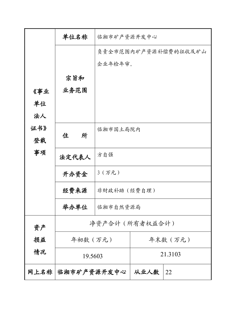 2023年度事业单位法人年度报告书—临湘市矿产资源开发中心