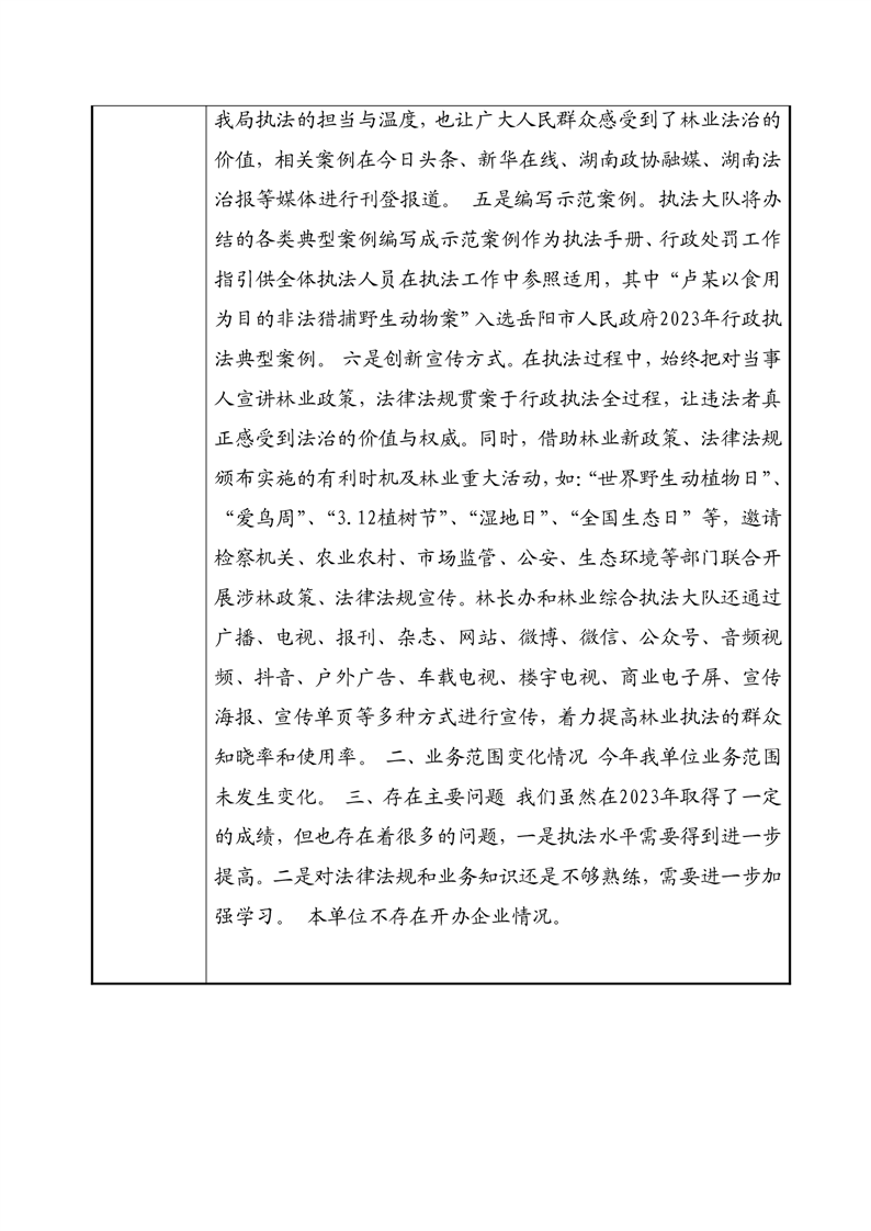 2023年度事业单位法人年度报告书—临湘市林业行政综合执法大队