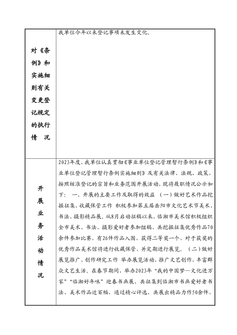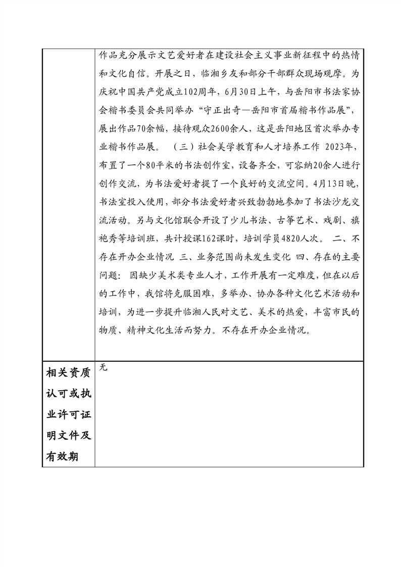 2023年度事业单位法人年度报告书—临湘市美术馆