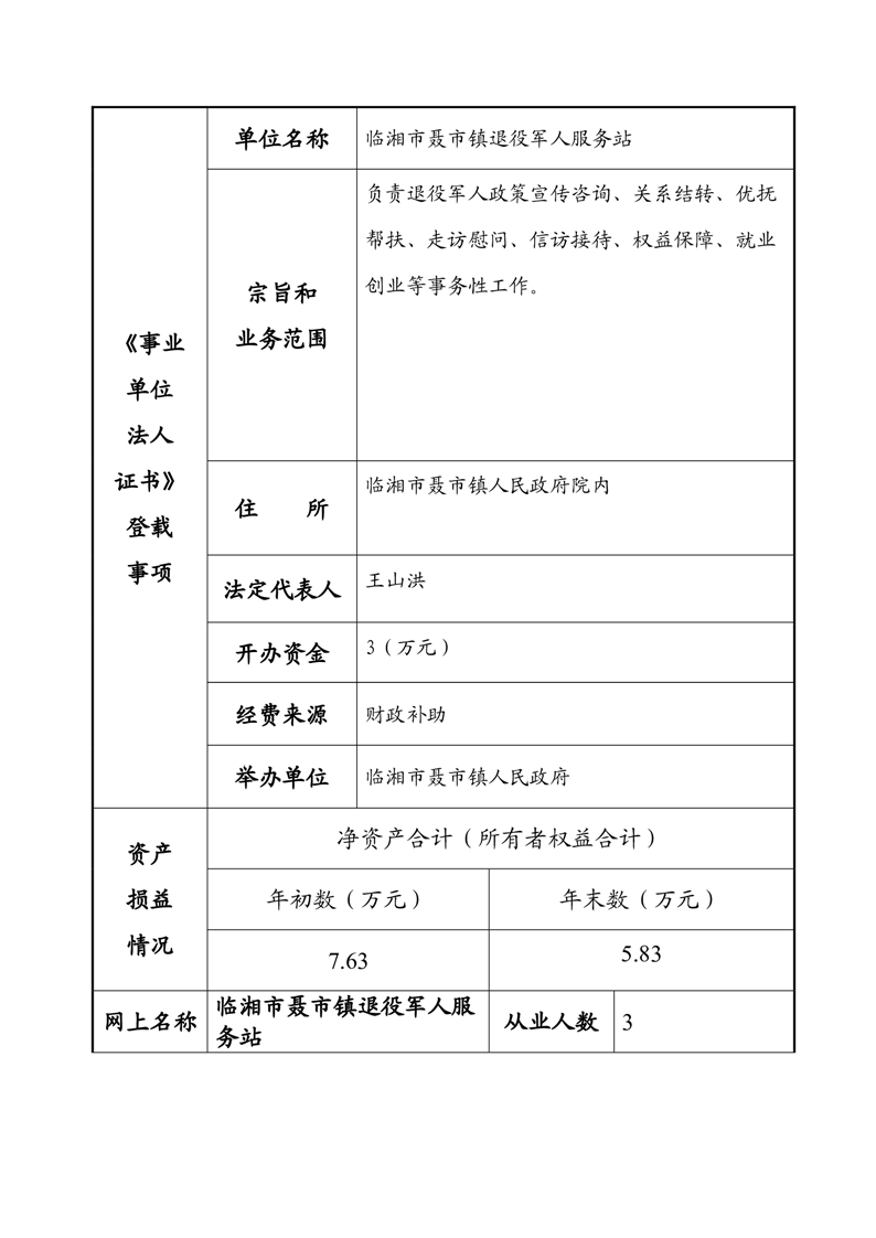 2023年度事业单位法人年度报告书—临湘市聂市镇退役军人服务站