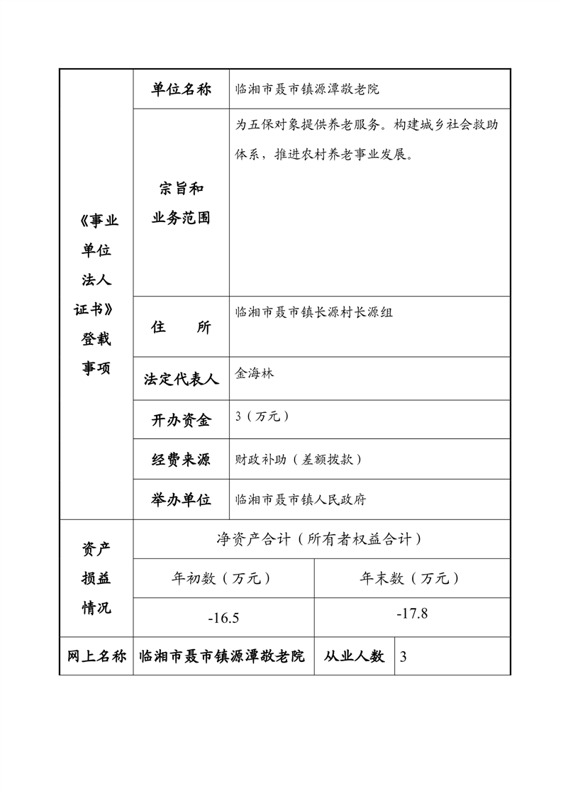 2023年度事业单位法人年度报告书—临湘市聂市镇源潭敬老院