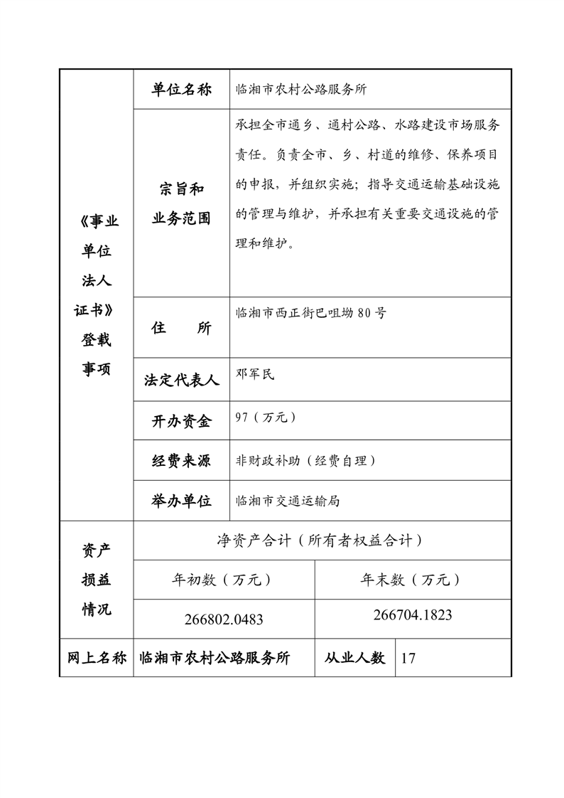 2023年度事业单位法人年度报告书—临湘市农村公路服务所