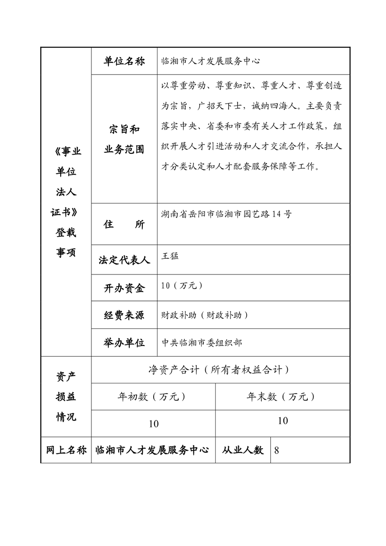 2023年度事业单位法人年度报告书—临湘市人才发展服务中心
