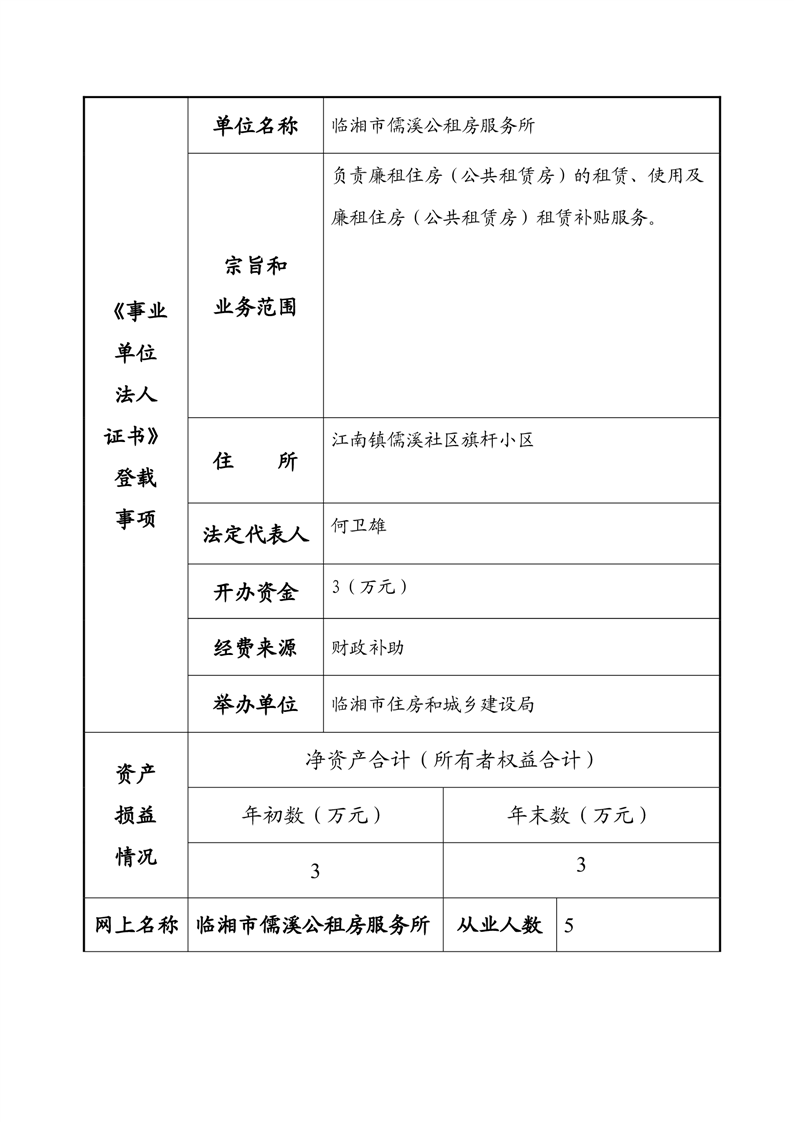 2023年度事业单位法人年度报告书—临湘市儒溪公租房服务所