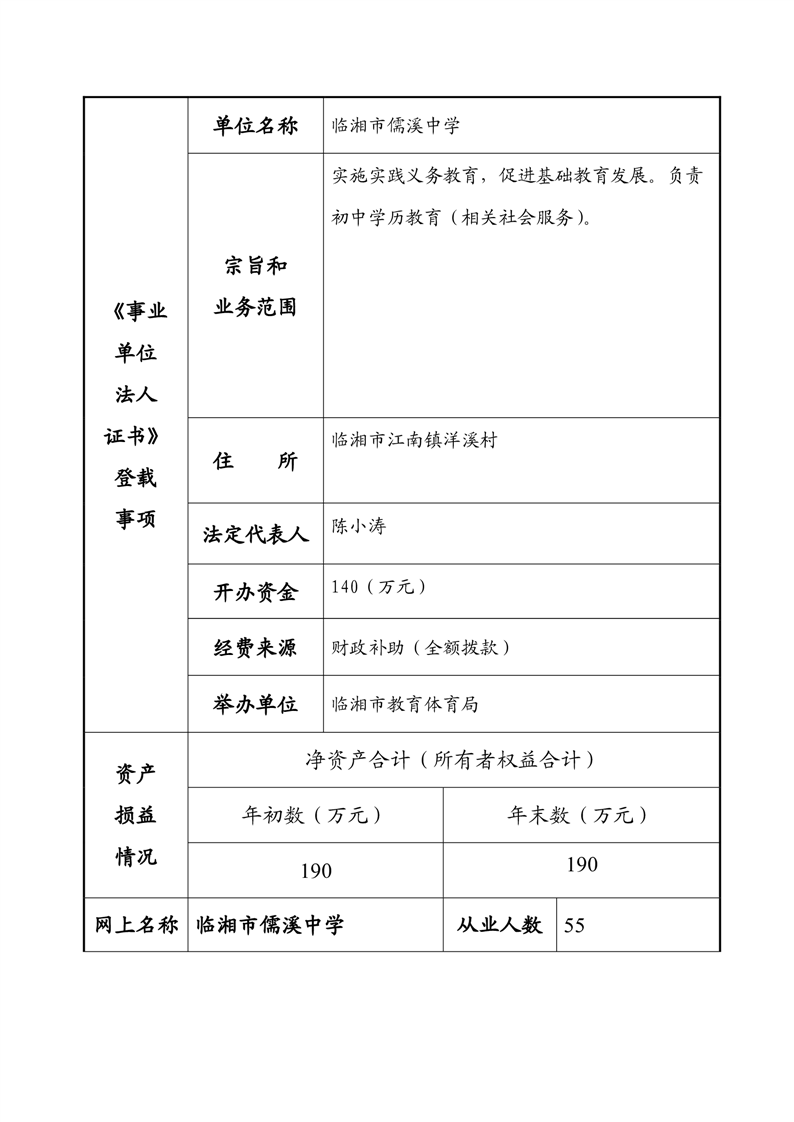 2023年度事业单位法人年度报告书—临湘市儒溪中学