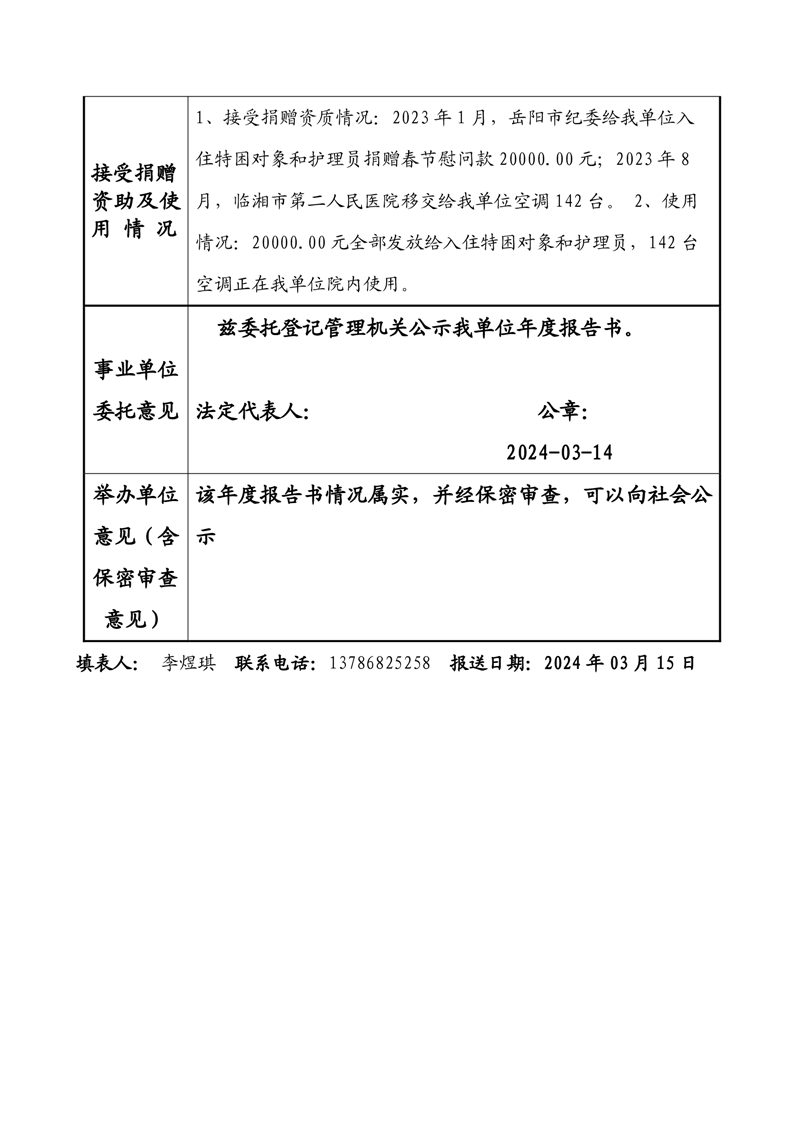 2023年度事业单位法人年度报告书—临湘市社会福利中心