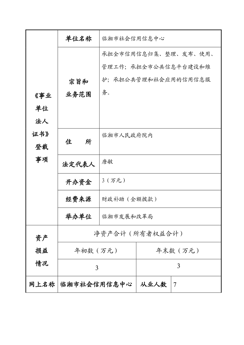 2023年度事业单位法人年度报告书—临湘市社会信用信息中心