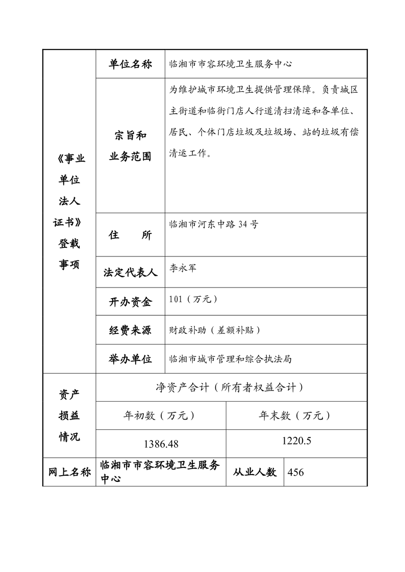 2023年度事业单位法人年度报告书—临湘市市容环境卫生服务中心