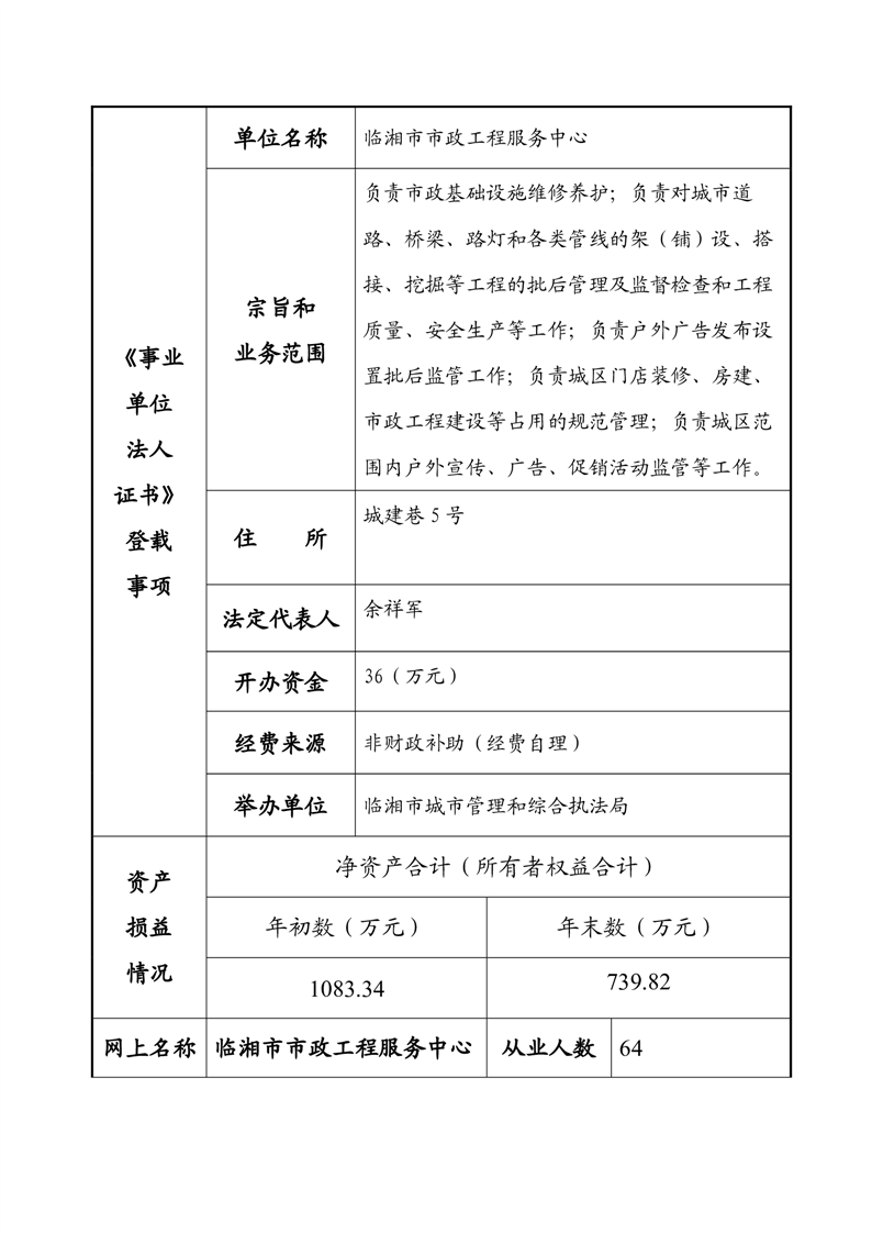 2023年度事业单位法人年度报告书—临湘市市政工程服务中心