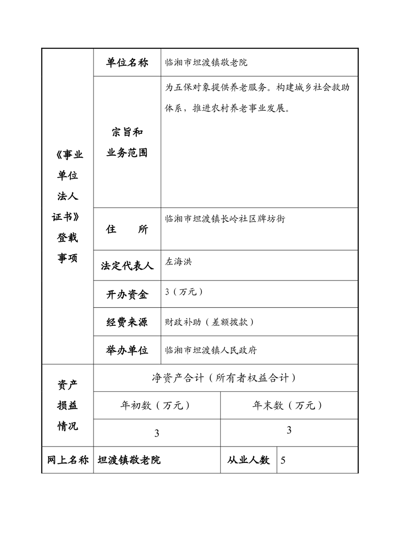 2023年度事业单位法人年度报告书—临湘市坦渡镇敬老院