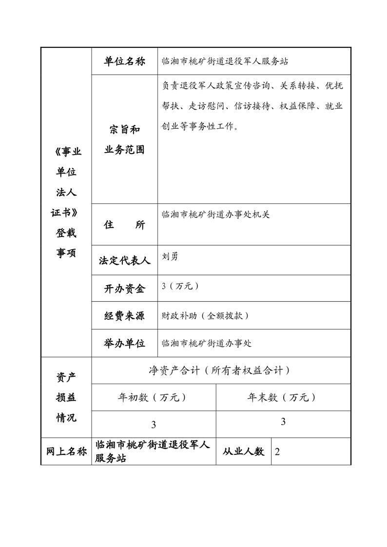 2023年度事业单位法人年度报告书—临湘市桃矿街道退役军人服务站