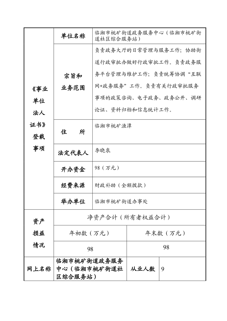2023年度事业单位法人年度报告书—临湘市桃矿街道政务服务中心