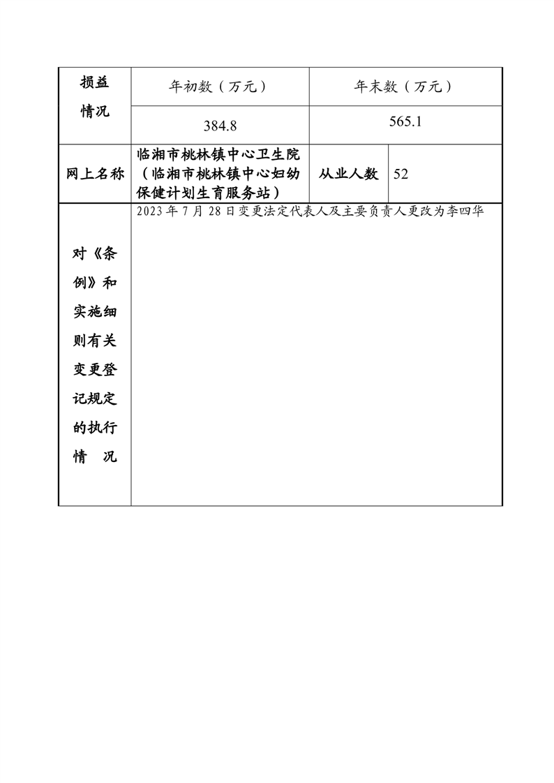 2023年度事业单位法人年度报告书—临湘市桃林镇中心卫生院