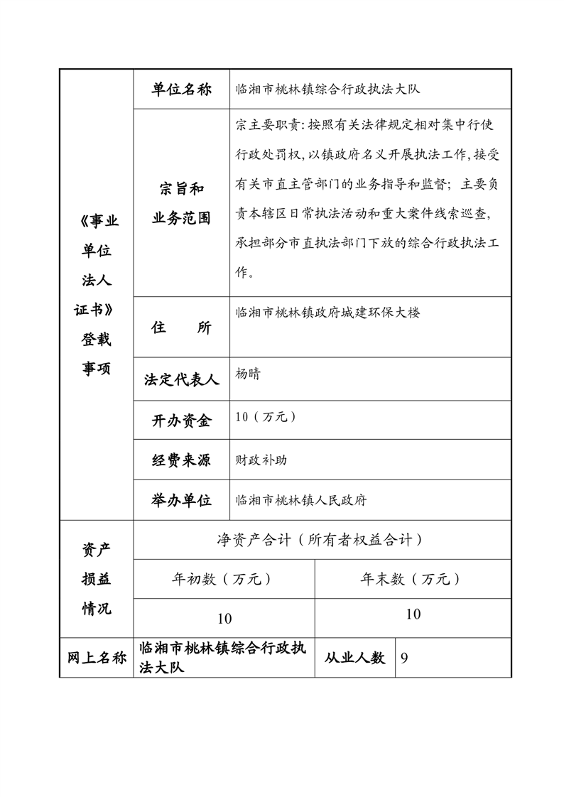 2023年度事业单位法人年度报告书—临湘市桃林综合行政执法大队