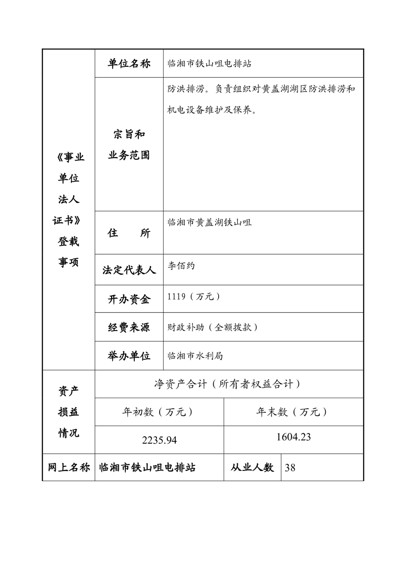 2023年度事业单位法人年度报告书—临湘市铁山咀电排站