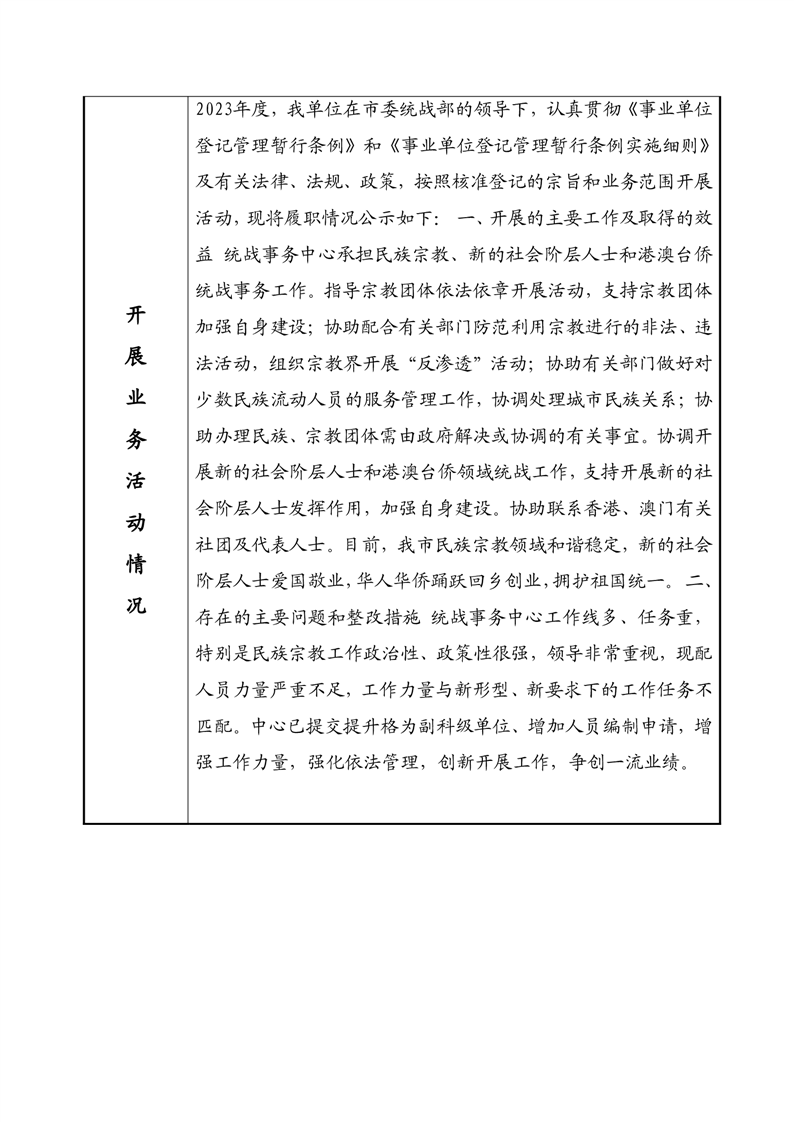2023年度事业单位法人年度报告书—临湘市统战事务中心