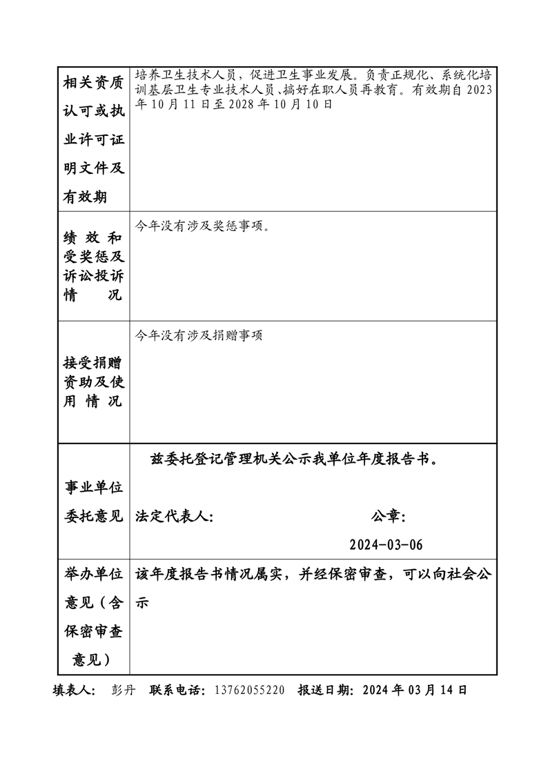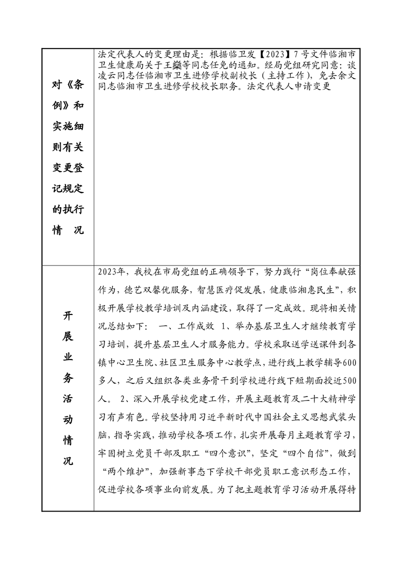 2023年度事业单位法人年度报告书—临湘市卫生进修学校