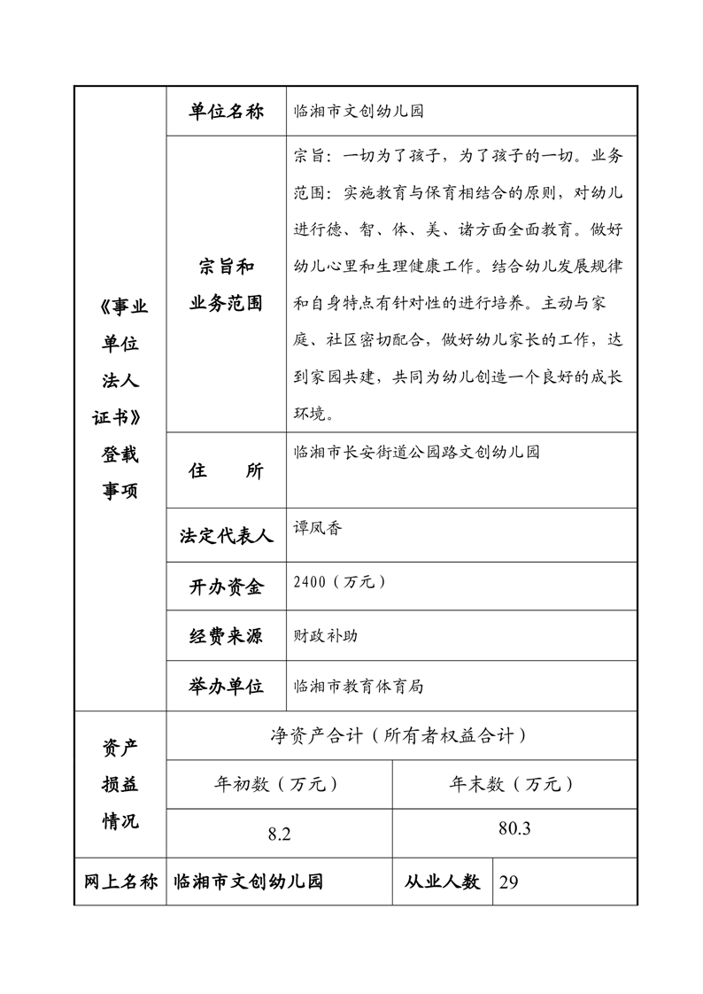 2023年度事业单位法人年度报告书—临湘市文创幼儿园