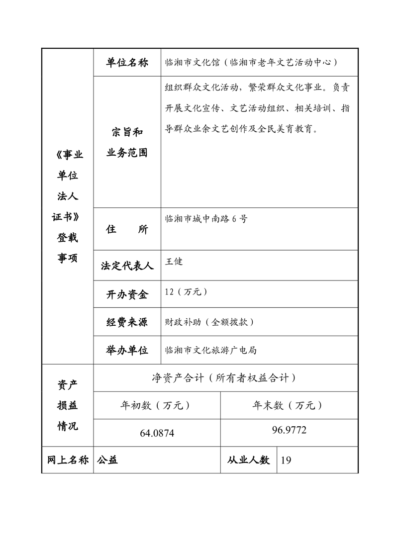 2023年度事业单位法人年度报告书—临湘市文化馆