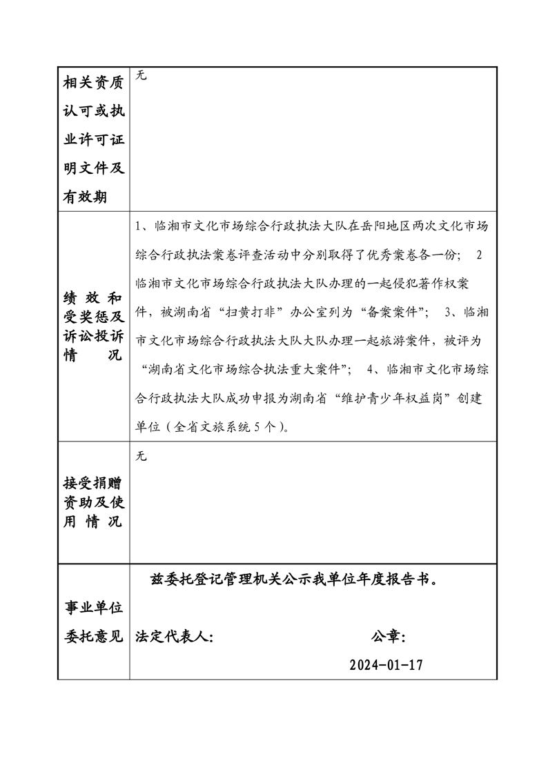 2023年度事业单位法人年度报告书—临湘市文化市场综合行政执法大队