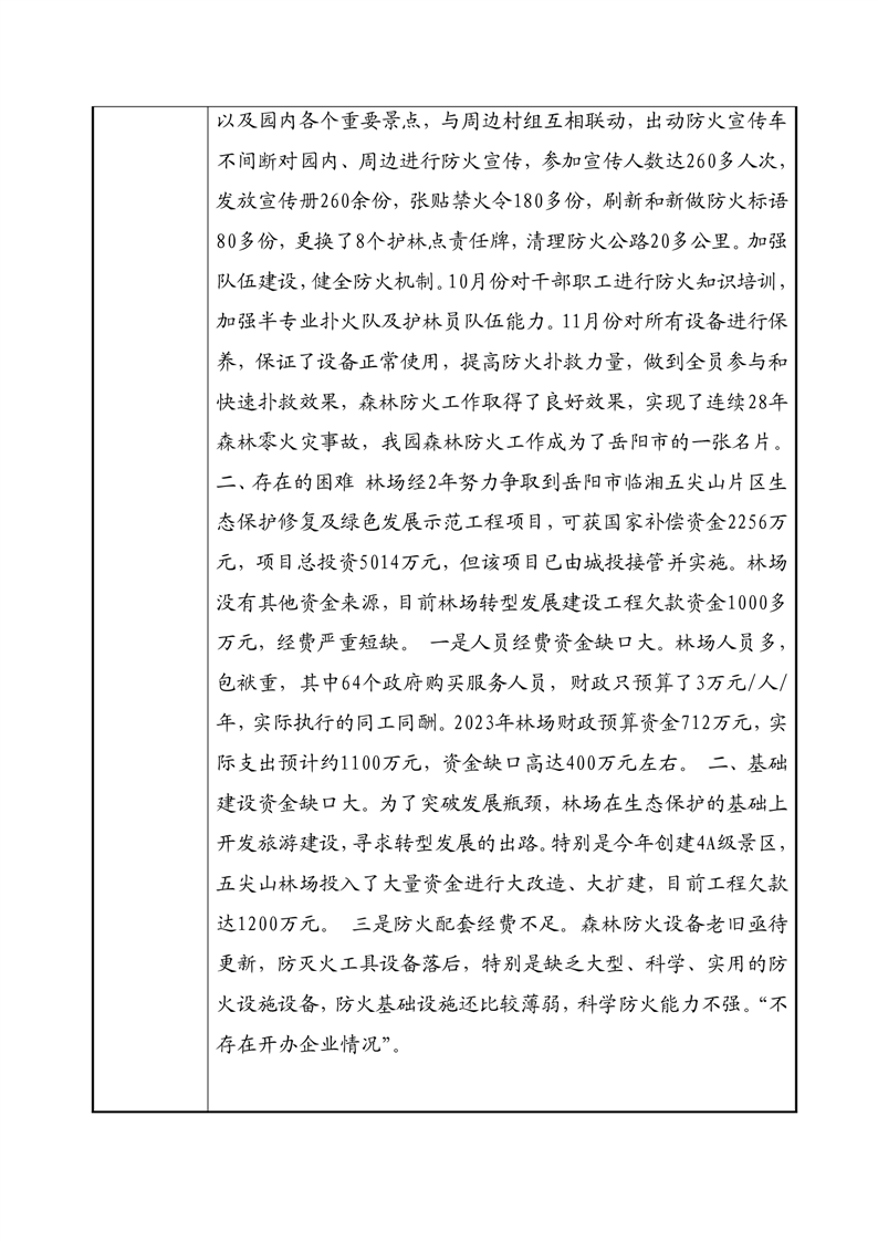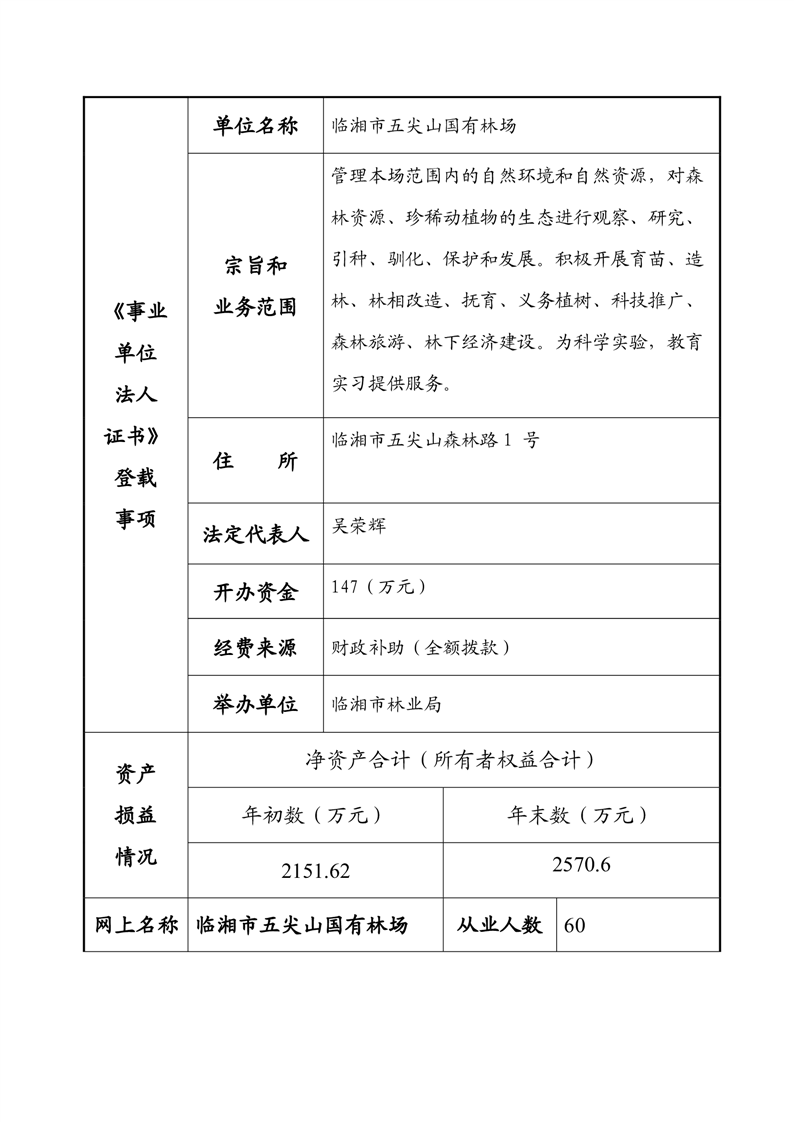 2023年度事业单位法人年度报告书—临湘市五尖山国有林场
